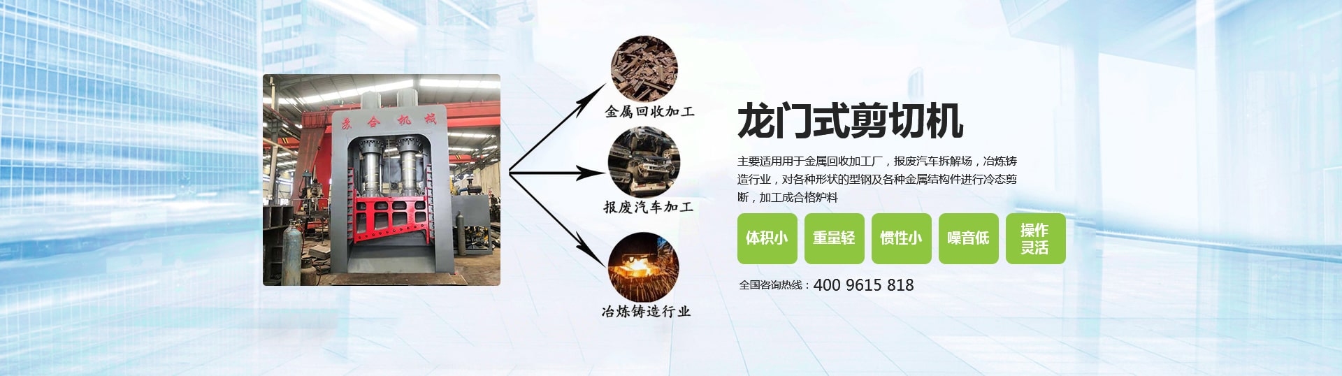 虎頭剪具有體積小、重量輕、慣性小、噪音低、動作平穩(wěn)、操作方便、靈活、剪切斷面大、剪刀口調(diào)整方便等優(yōu)點,操作使用安全。常用于廢舊回收企業(yè)、廢鋼廠、冶煉鑄造企業(yè)對各種形狀的型鋼及各種結(jié)構(gòu)的金屬進行冷態(tài)剪切。剪切機的用途就是用來剪切定尺、切頭、切尾、切邊、切試樣及切除軋件的局部缺陷等。 滑縣蘇合機械制造有限公司性能穩(wěn)定,操作簡單。歡迎來電咨詢 <了解更多>